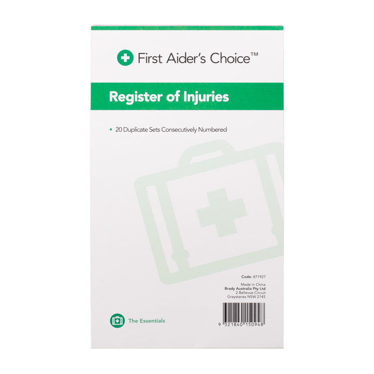 This First Aiders Choice Register of Injuries comes with 20 duplicate sets so you can keep a record of any injuries that occur. It also comes with a pen so you'll be able to note down any accidents right away.